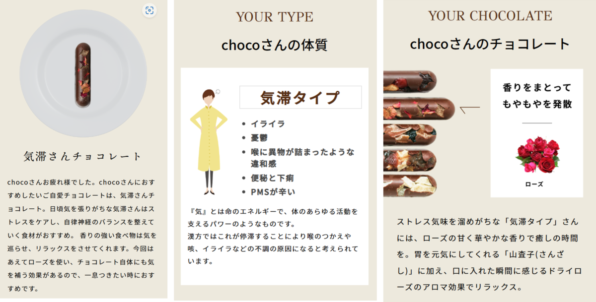 名称:体質診断付“ご⾃愛チョコレート”