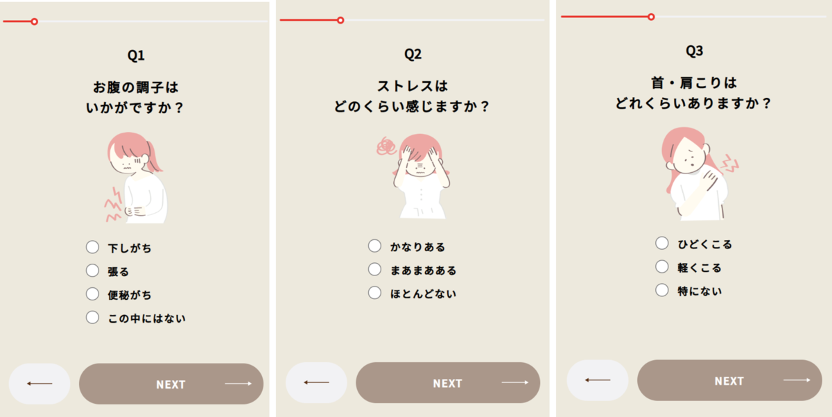 スマホやタブレットでQRコードを読み取り、特設サイトで⽇頃気になる症状をチェック。すると……漢⽅の考えに基づいた5つの体質タイプ(気虚、気滞、瘀⾎、⾎虚、⽔滞)のうち、⾃分がどの体質に当てはまるのか簡単に診断することができます。