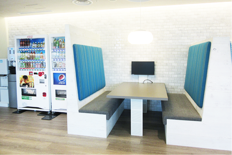 その他、充実していると思うのは、仕事中の飲み物とお菓子。種類豊富な自動販売機とコーヒーマシンがあり、すべて無料です。もちろんお客様も、お好きなものを選んでいただけます。