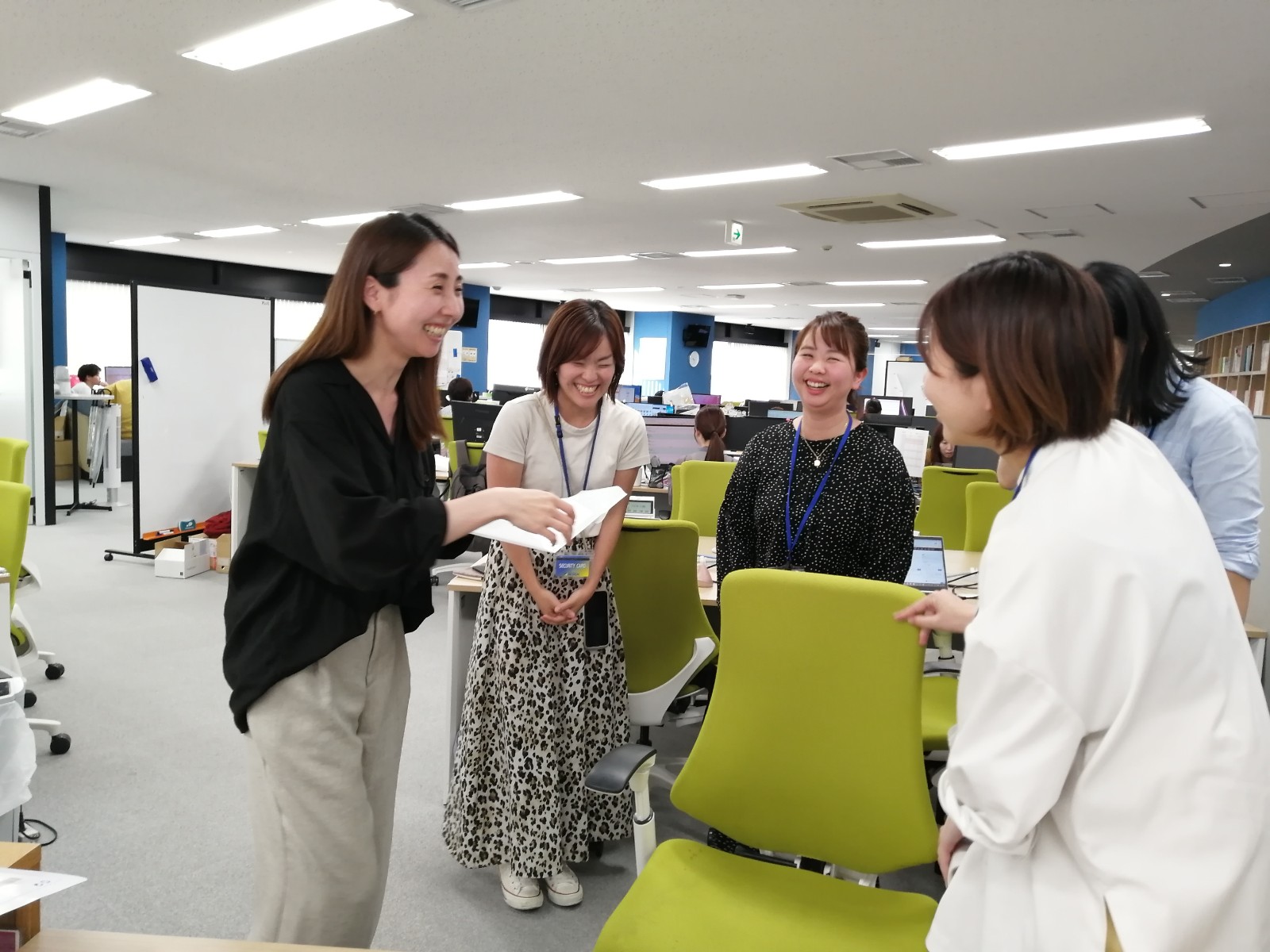 (産休に入る社員に、代表から安産祈願の絵馬を贈る恒例イベントの様子)