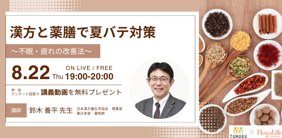 薬日本堂漢方スクールの講師と学ぶ!漢方と薬膳で夏バテ対策 ~不眠・疲れの改善法~
