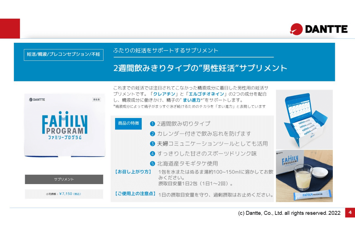 株式会社ダンテの精液チェックキットと妊活サプリメントのご紹介