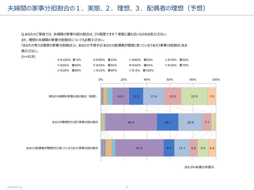 夫婦間の家事分担割合の実態と理想